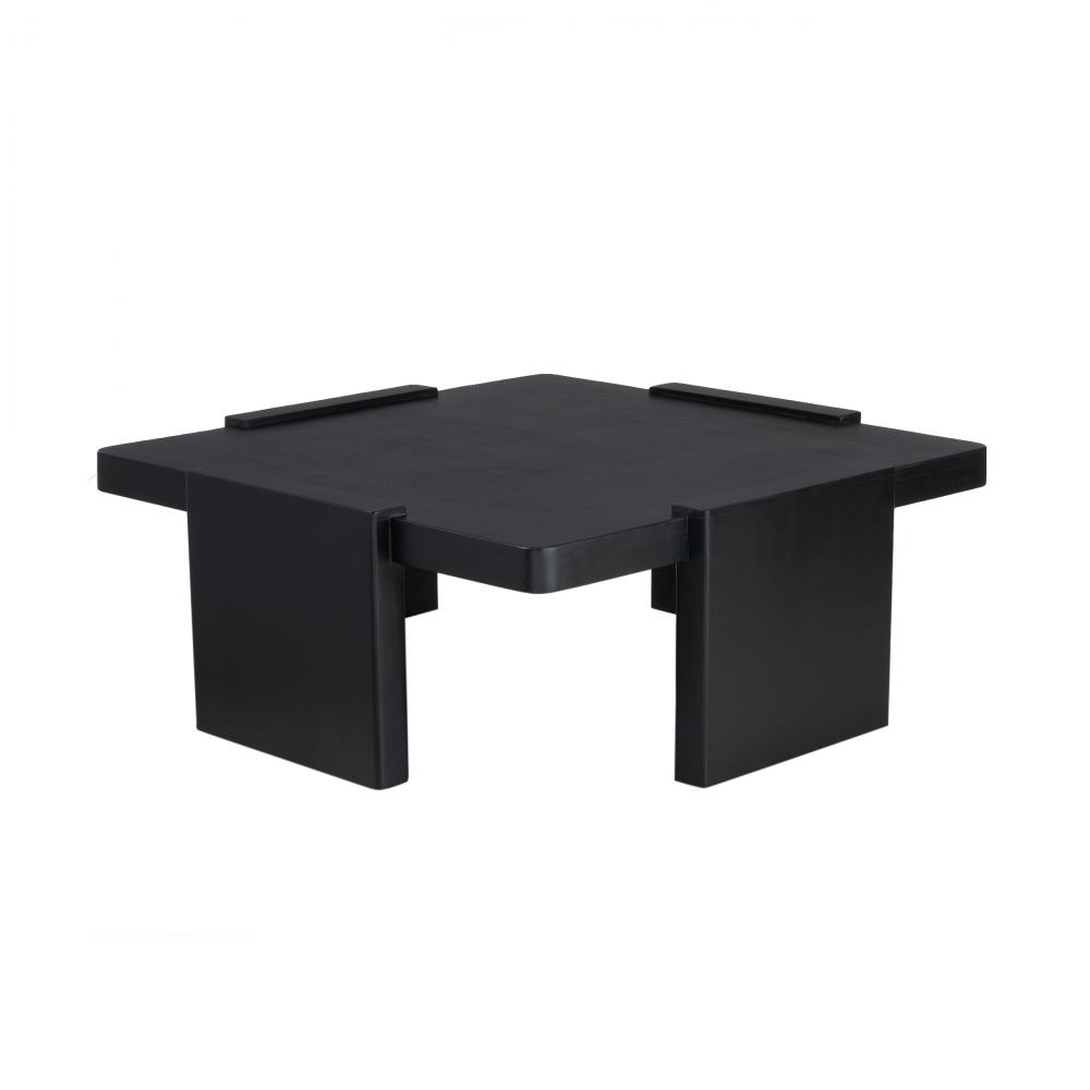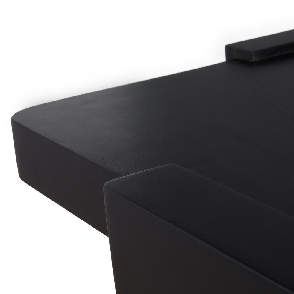 A suspended style of ebony mango wood is greater than the sum of its parts. Passing planes that serve as its support extend above the top slab to reveal an intriguing dimensionality. Rounded at the corners. Finish will vary.