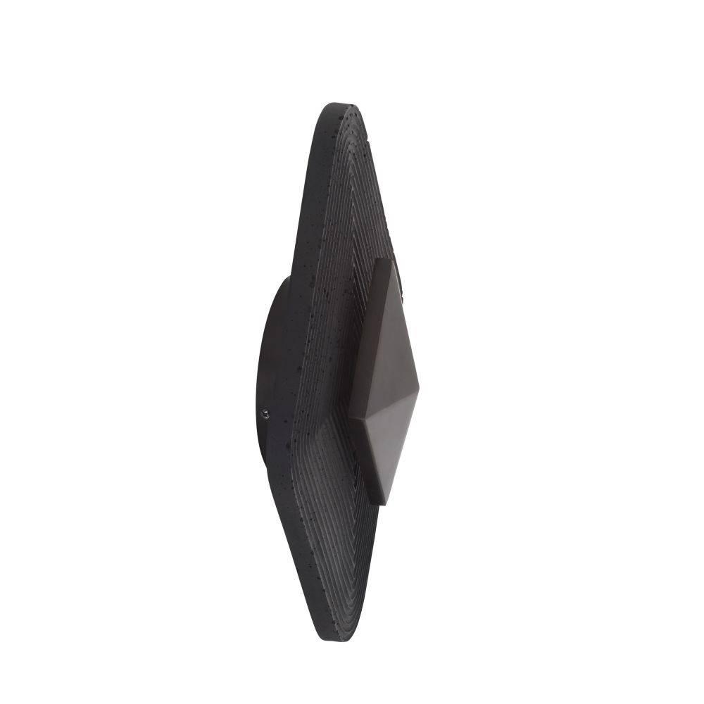 The opulent and intricate linework of Art Deco informs Gatsby's resonant form. A faceted diamond of English bronze-plated iron is suspended on a grooved backdrop of charcoal ricestone composite, allowing light to bounce off its dark surface. This integrated LED fixture has a white acrylic diffuser to soften the glow from a single bulb. Damp-rated, although limited covered outdoor areas may affect finish.