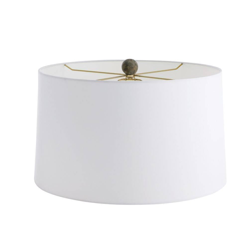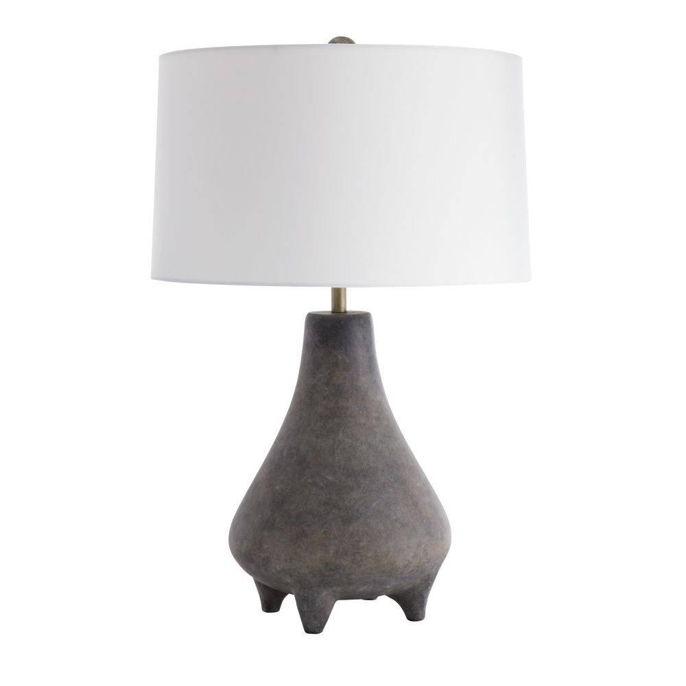 The quirky silhouette of our terracotta lamp gives the illusion of a fanciful animal. Oversized in scale and finished with a textural rhino glaze, it makes an impactful accessory for a living space or bedroom. Topped with an off-white microfiber drum shade in off-white cotton. Antique brass-plated steel hardware and matching finial. Finish will vary.