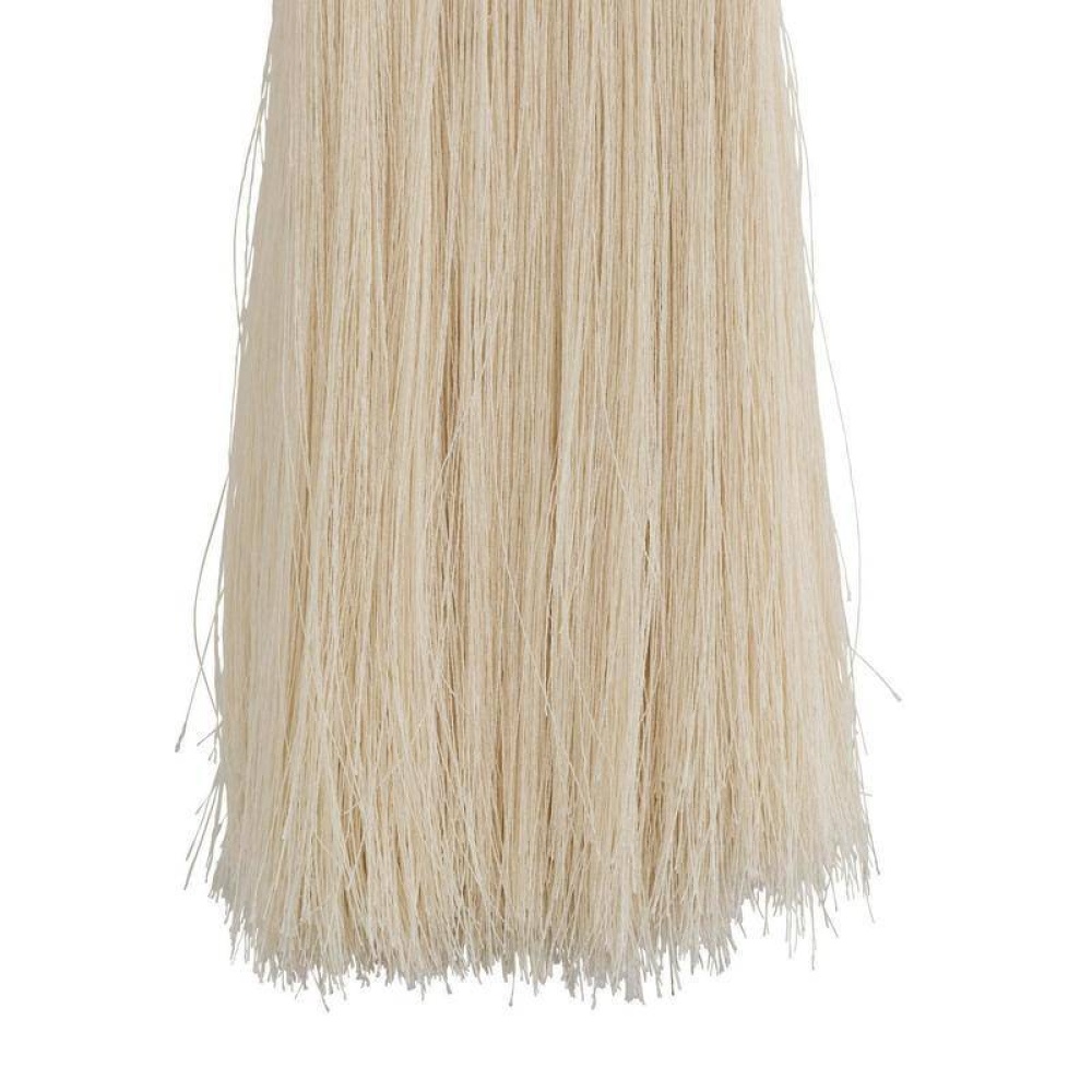 A lavish tassel of ivory microfiber is set in a textured metal framing, allowing the warm glow of LED light to project upwards. This sophisticated style is cinched with a matching chattered antique brass detail, adding to its jewel-like appeal. Damp-rated, although limited, covered outdoor conditions may affect finish.