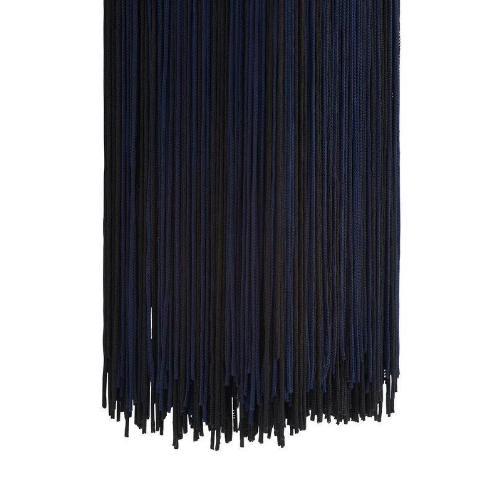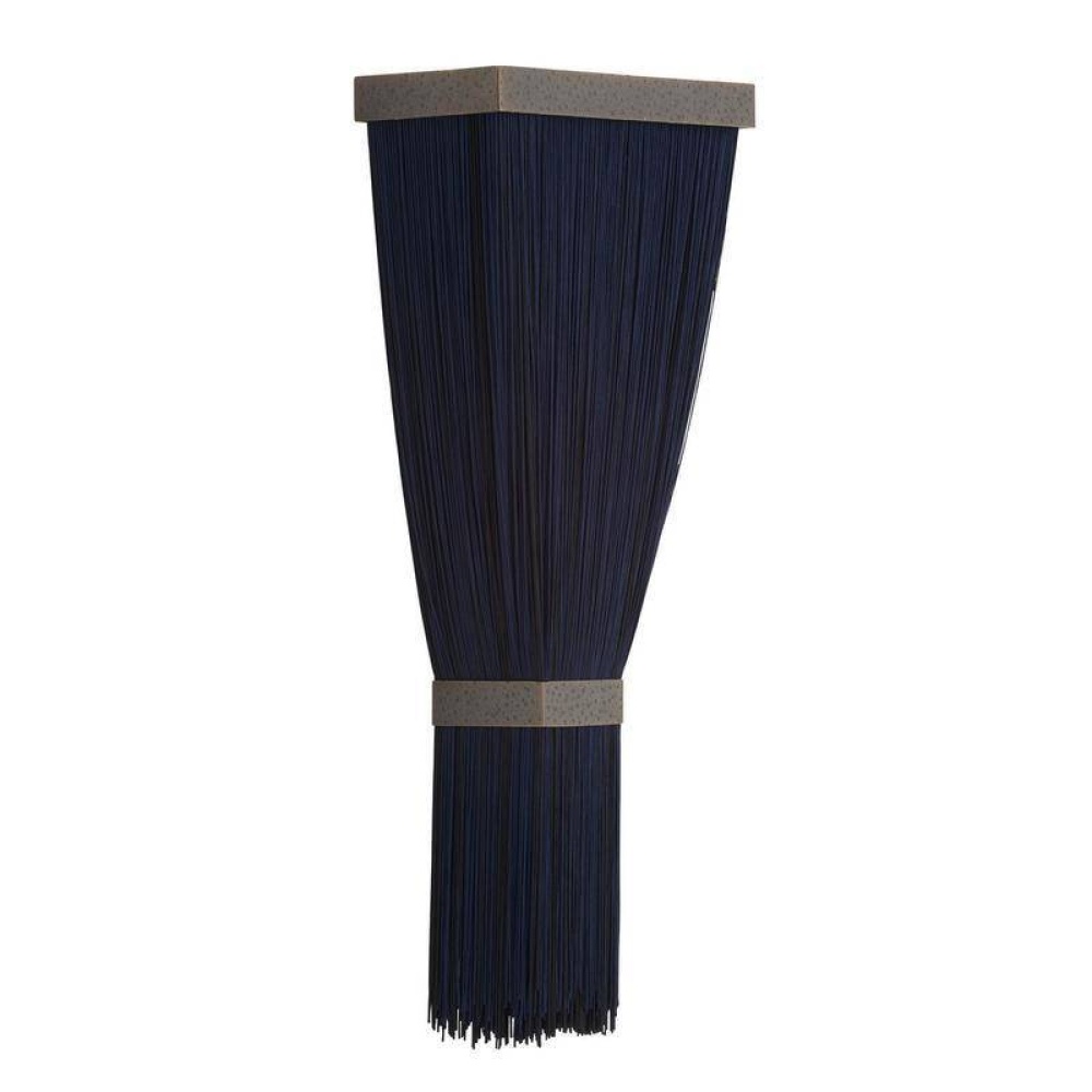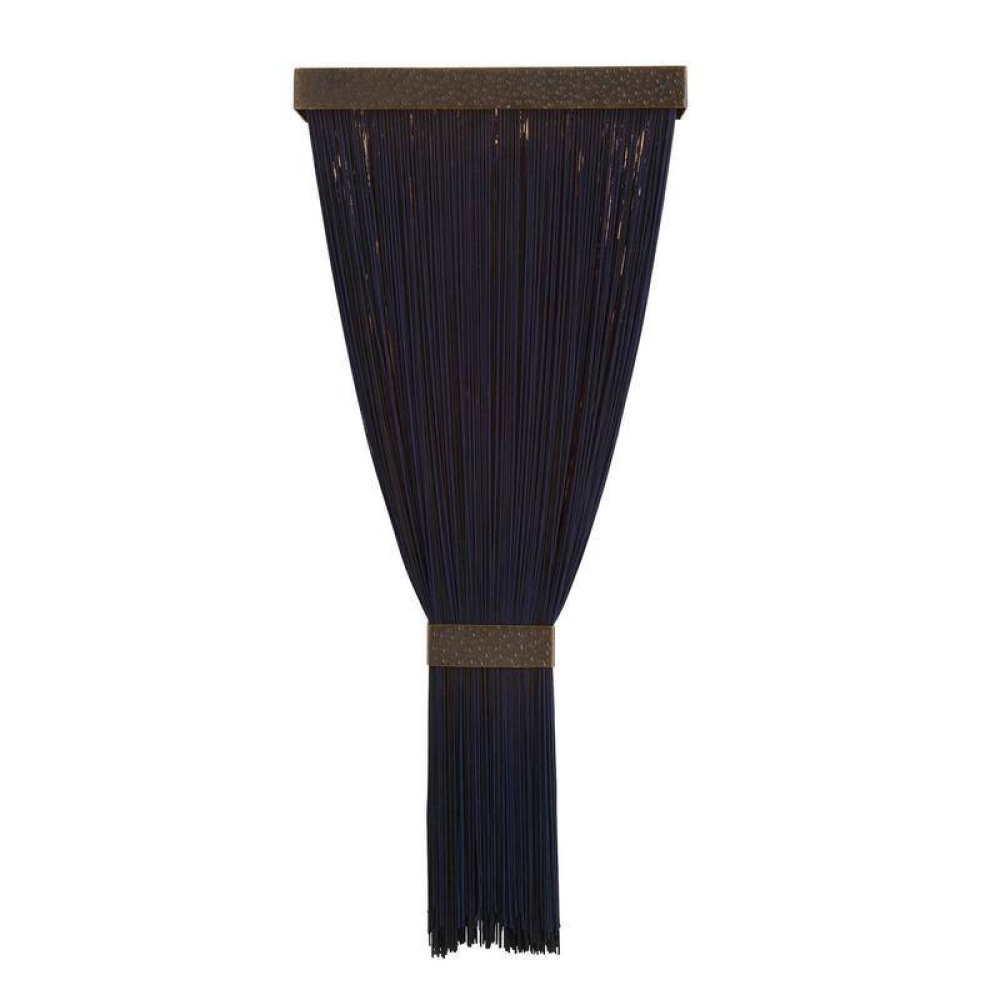 A lavish tassel of navy microfiber is hung in textured metal framing, allowing the warm glow of LED light to project upwards. This sophisticated style is cinched with a matching chattered antique brass detail, adding to its jewel-like appeal. Damp-rated, although limited, covered outdoor conditions may affect finish.