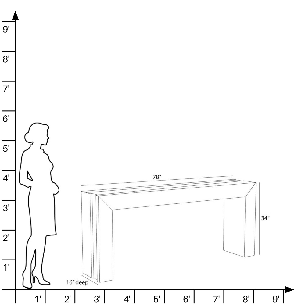 The thick waterfall silhouette of this umber mango wood table makes a chic statement in the entry or hallway. An inset of racing stripe of natural faux horn resin cascades from the narrow top down the sides, assuring a visual impact from every angle. Finish will vary.
