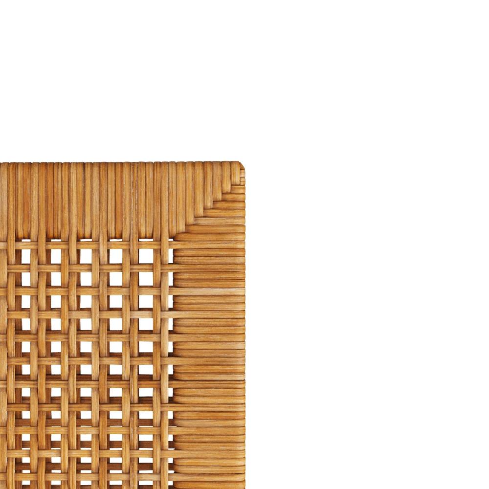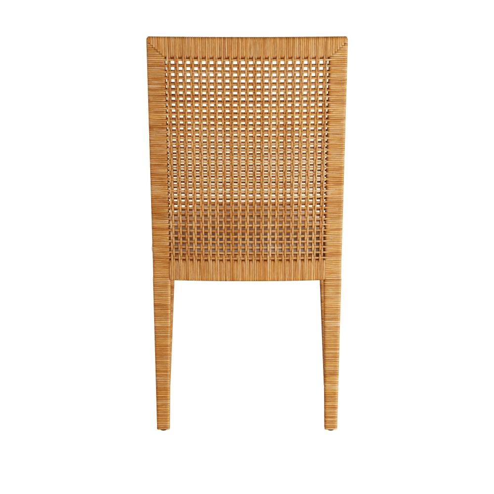 THE PALMER EXPRESSES A RELAXED YET REFINED AESTHETIC THAT MARRIES MODERN LINES WITH THE RICH APPEAL OF RATTAN. THE STRIKING SIDE CHAIR IS DESIGNED WITH NATURAL RATTAN THAT WRAPS THE CHAIR’S MAHOGANY FRAME AND FORMS THE CANING ON THE ARM PANELS AND BACK REST. THE SEAT IS UPHOLSTERED IN BREEZY, BRIGHT WHITE MUSLIN FOR RECOVERING. FINISHES WILL VARY.