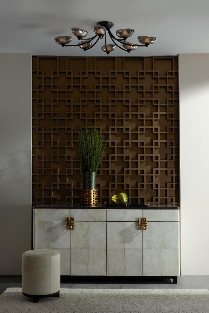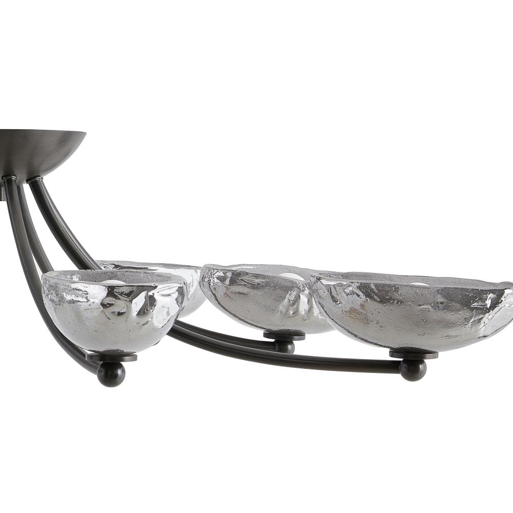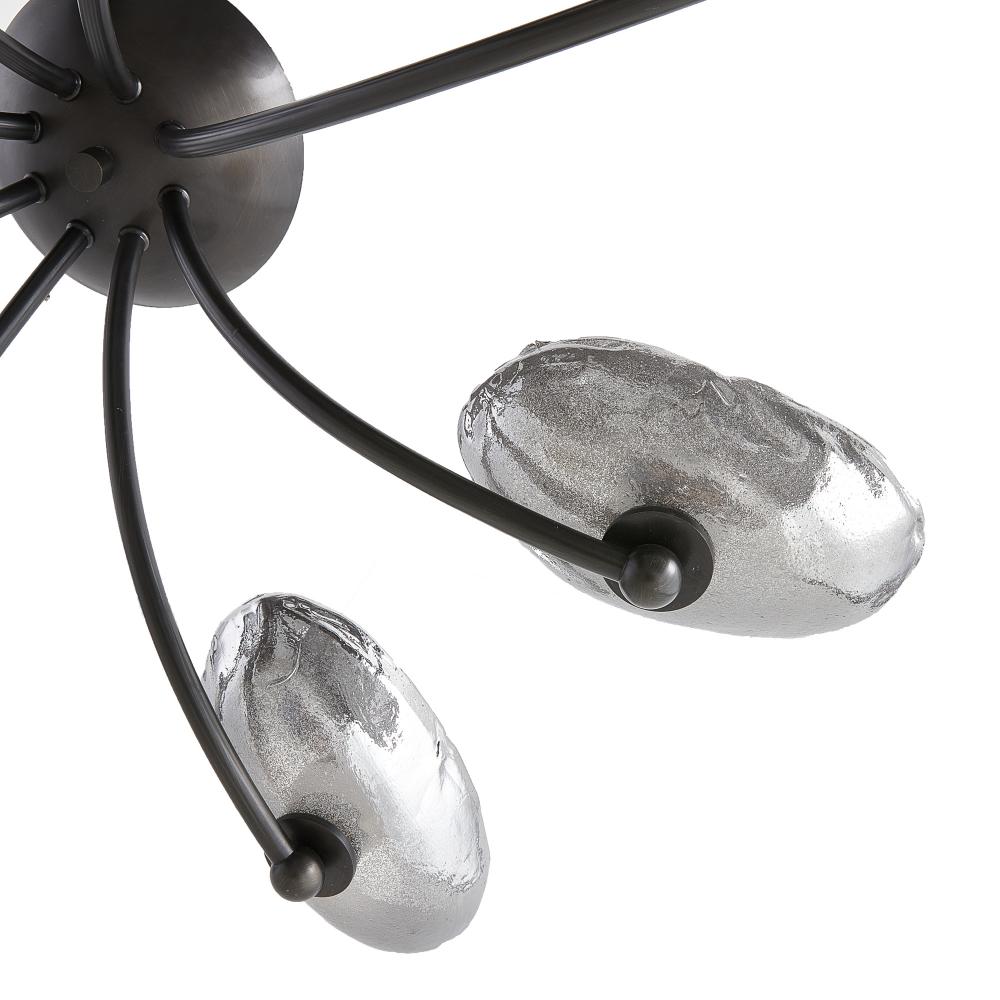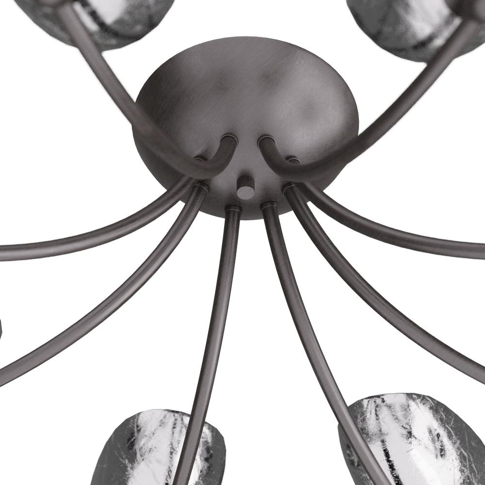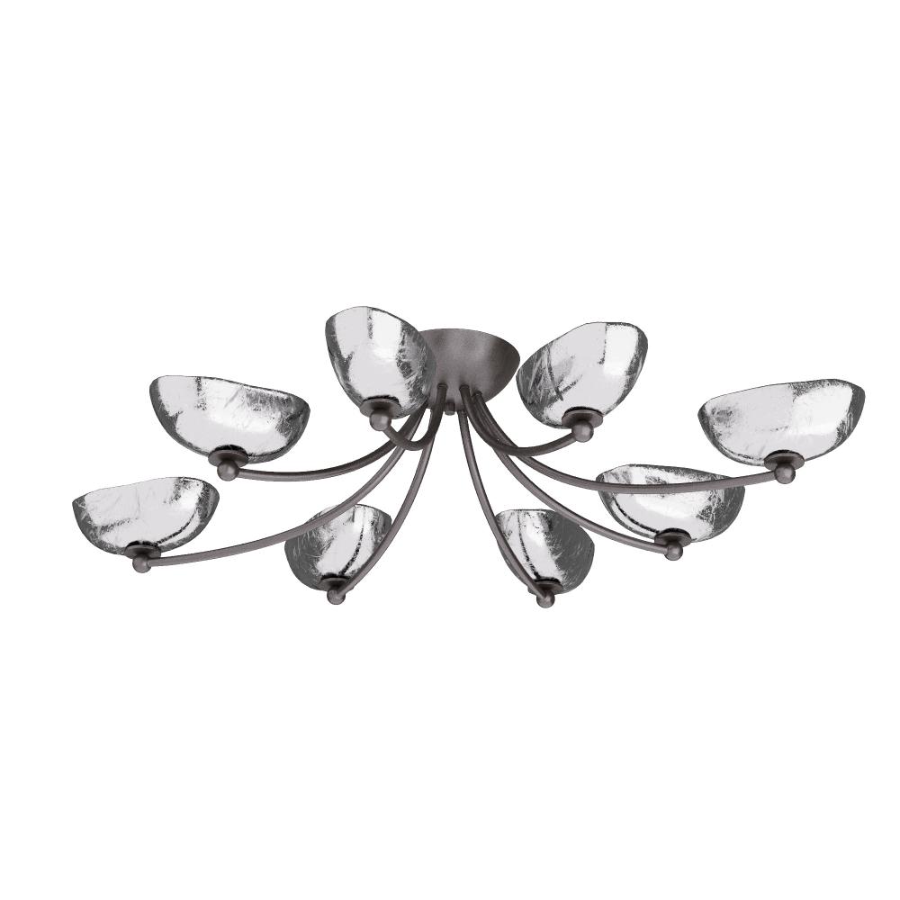 Constructed to resemble a playful arachnid, the organic forms of the Zamora bring the drama to any room. Designed to work perfectly within a lower ceilinged setting, each of its eight iron arms is finished in English bronze. Integrated LED glows though opal globes, with shades of seedy slump glass in an intriguing smoke finish. Finish will vary. Damp-rated, although limited covered outdoor conditions may affect finish.
