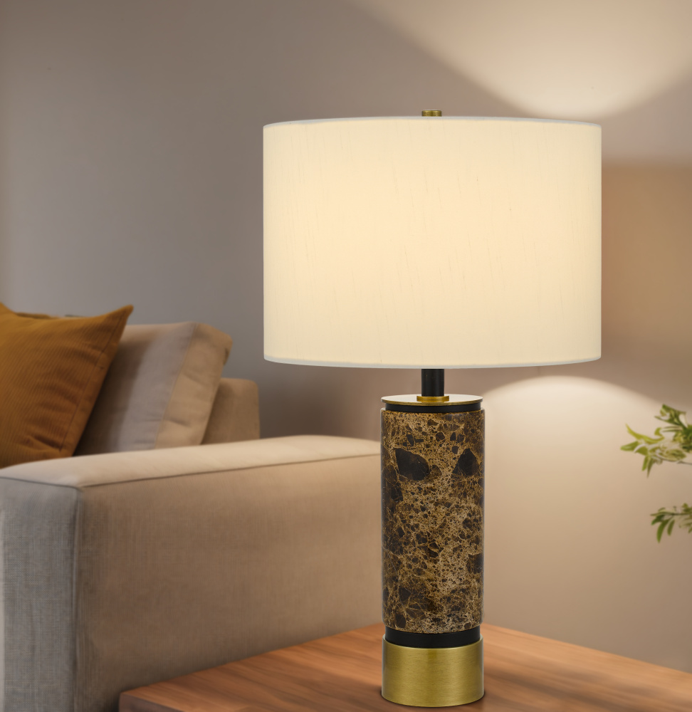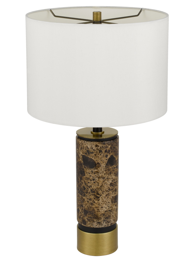 150W 3 way Salford Marble stone table lamp with metal base and hardback fabric shade