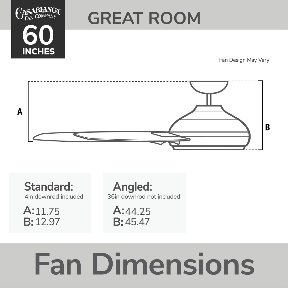 GREAT ROOM FAN: Ideal size for great rooms, open concept spaces, and lofts.