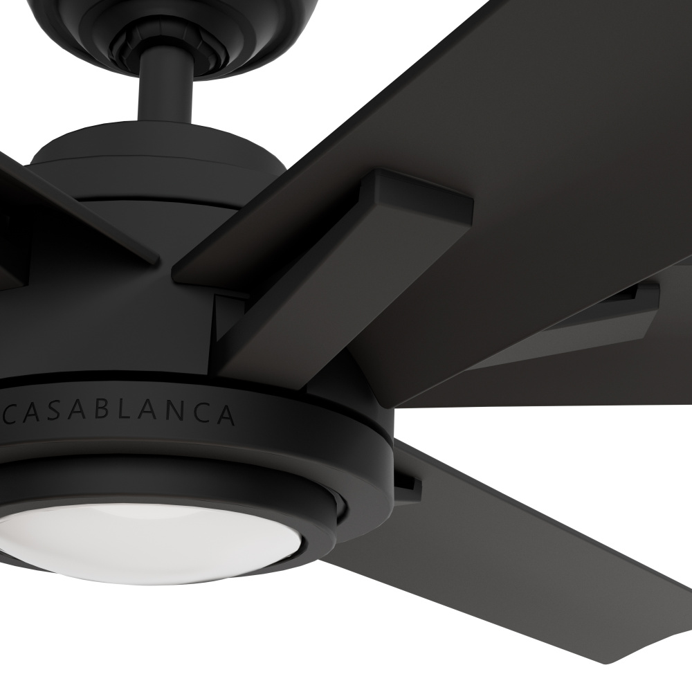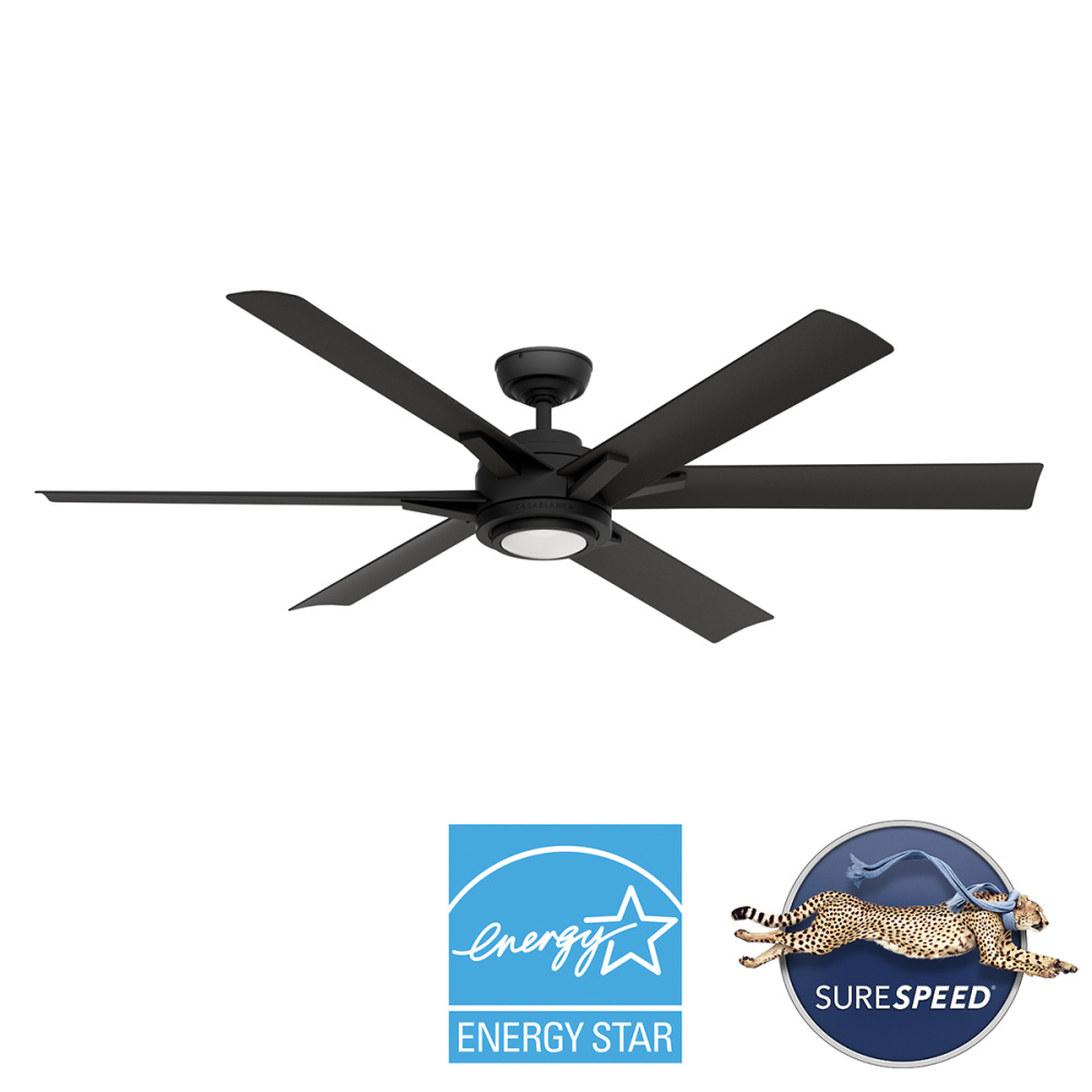 Casablanca 65 inch Melia ENERGY STAR® Matte Black Damp Rated Ceiling Fan with LED Light Kit