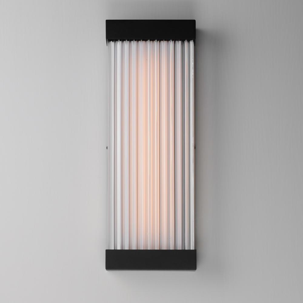 A colonnade of faceted crystal columns form these rectangular wall sconces suitable for wet locations. The crystals are backlit with an evenly distributed LED light source that is set within non-corrosive Aluminum and Stainless Steel frames. With an extens