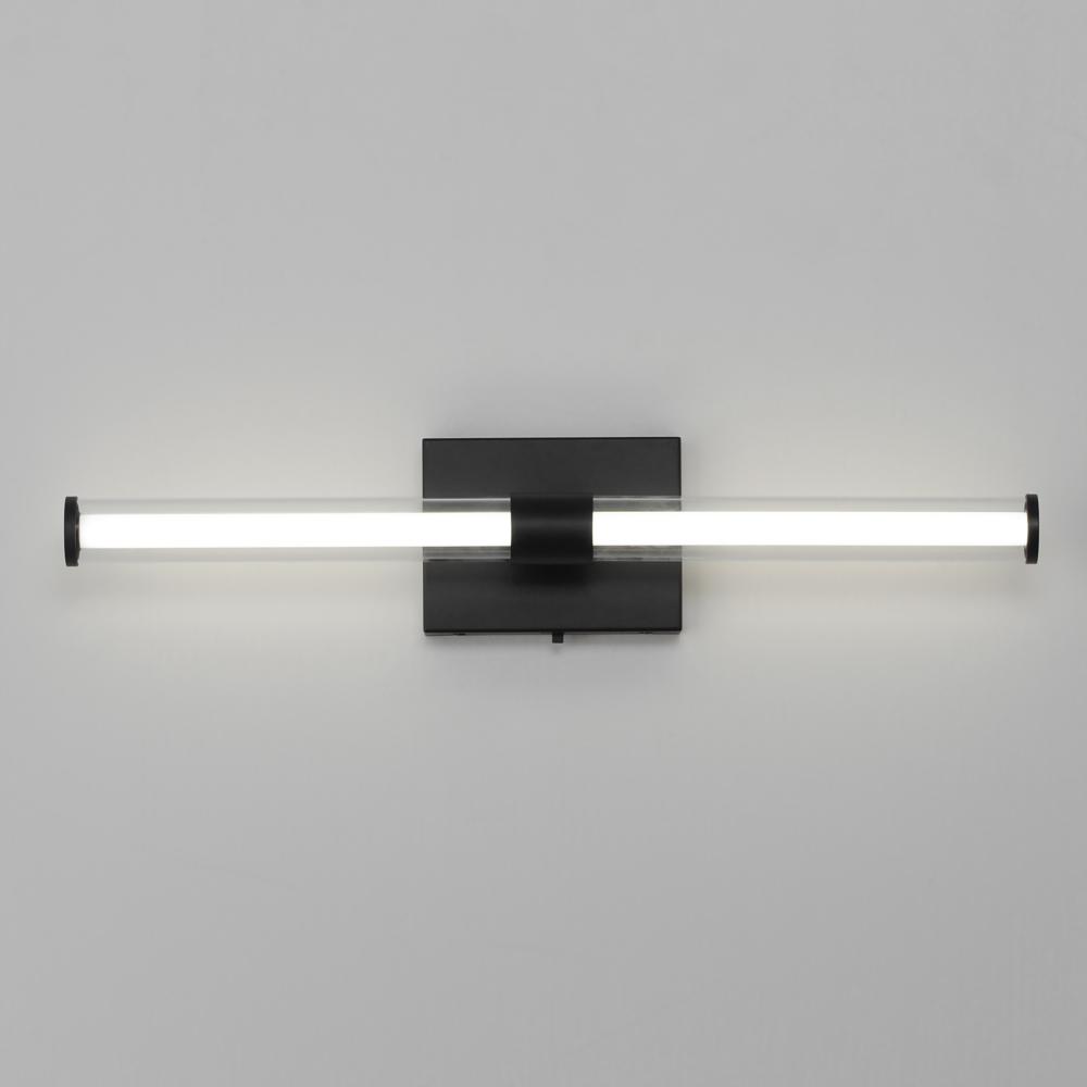 Within the void of clear glass, a white cylindrical tube of LED light extends in two directions. The evenly distributed light source can be adjusted to 5 selectable color temperatures, from warm 2700k to a cool 5000K and neutral white light sources in betw