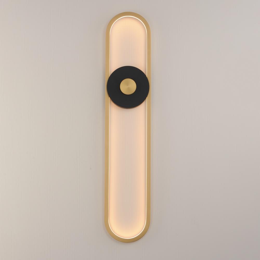An elliptical shape in Gold finish is illuminated by dedicated LED lighting and secured to a disc in contrasting black finish making a modern silhouette rated for outdoor applications. Suitable for wet locations, the fixture is constructed of corrosive res