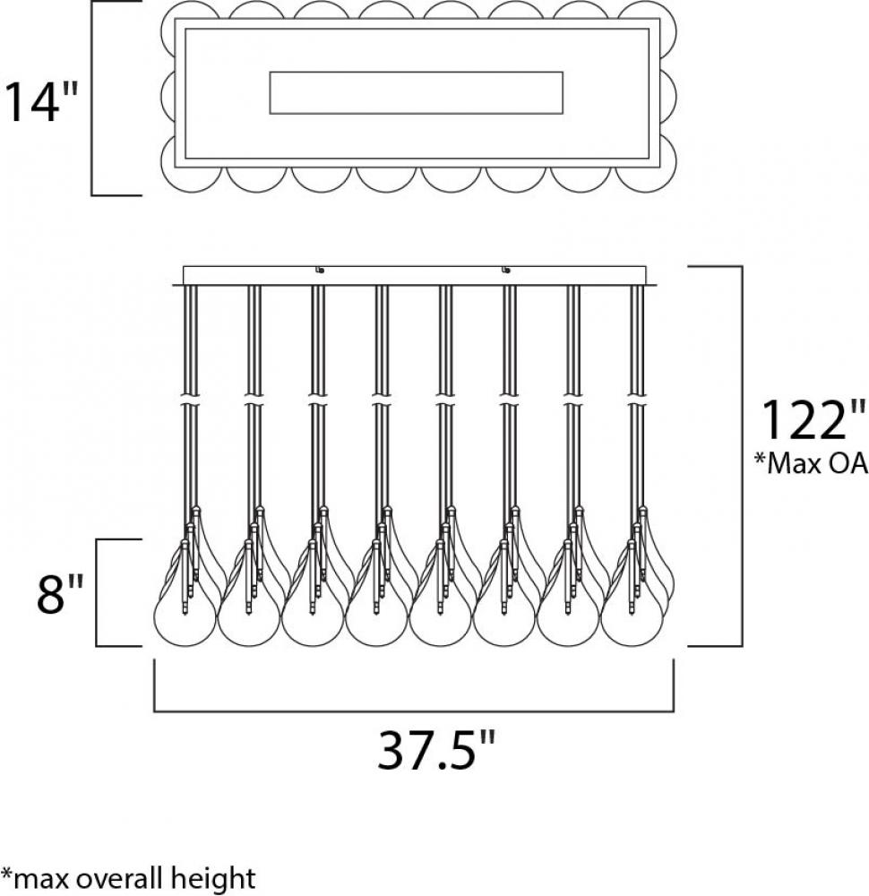 A simple idea gracefully executed in the Larmes collection. Row upon row of Clear oversized teardrops, mounted onto an extended Polished Chrome lamp holder that supports xenon lamps, sets the stage. Individually adjustable drops for custom stagger effects