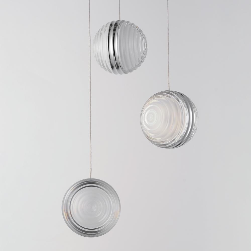 Ridged acrylic profiles extend in two halves along a coordinating aluminum extrusion in Polished Chrome. As if in motion, the form creates a frequency of light that is illuminated from internal LED integrated light sources. Available in a variety of config