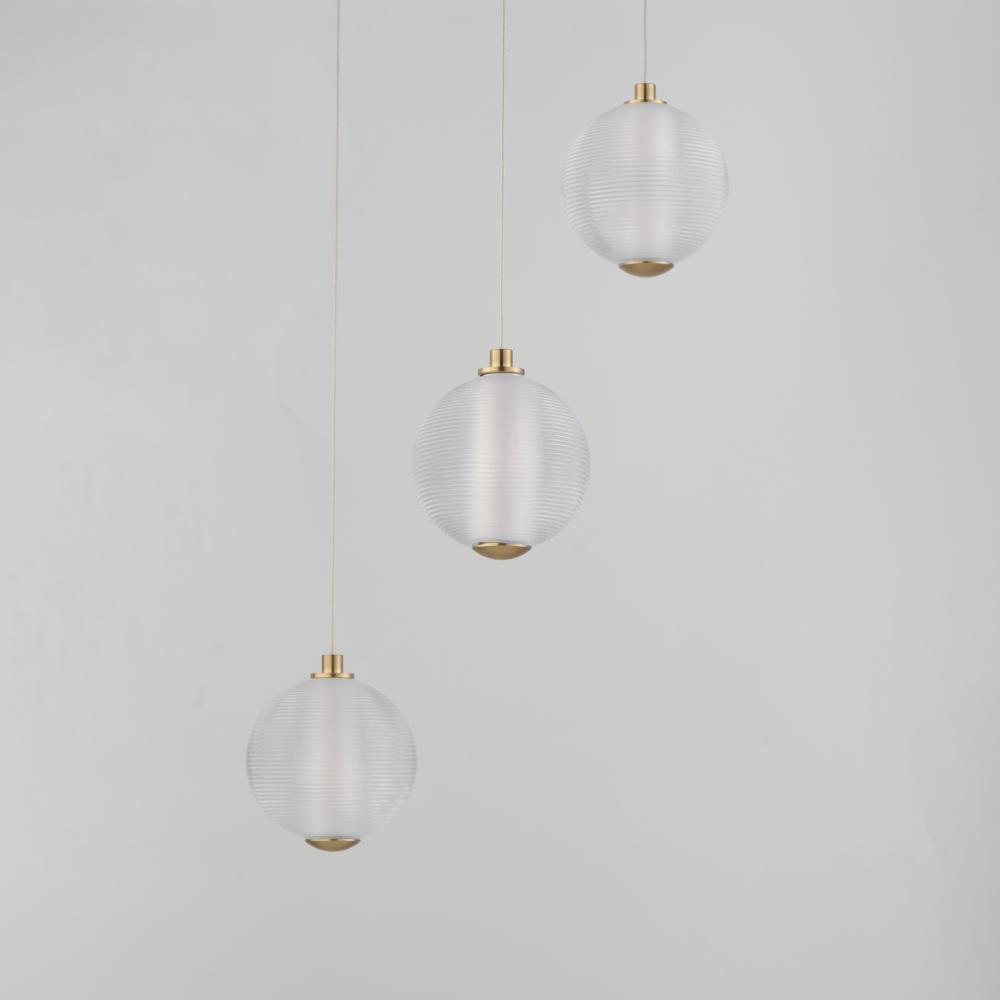 Ablaze with omnidirectional LED light radiating from the center of perfectly ribbed spheres, the lustrous glow within accentuates the repeating pattern on the glass' exterior. With minimal hardware visible outside the glass, select from Polished Chrome