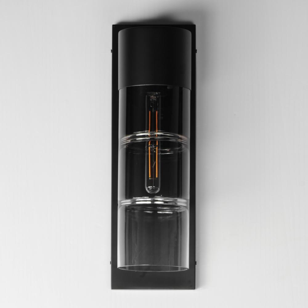 Segmented glass cylinders in a grey Smoke Gradient filter nostalgic tubular LED lamps. The Matte Black frame adds a dark contrast providing ambient light as a guide to your exterior. Select from 3 sizes of wall sconces, all wet rated.