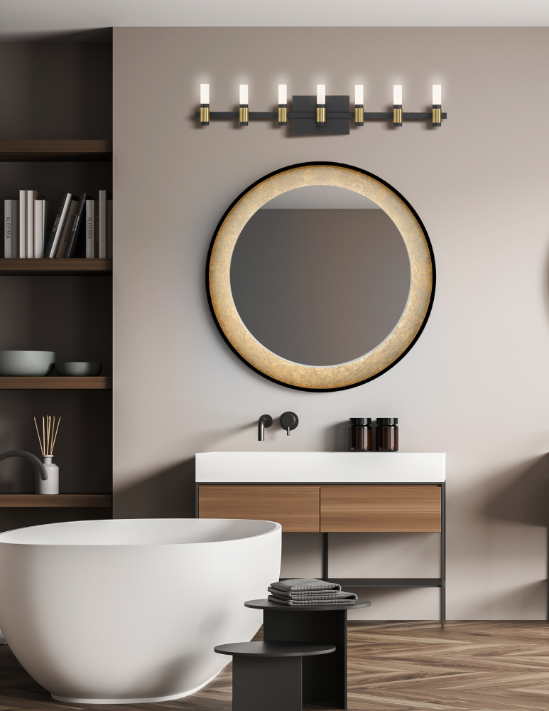 A soft industrial design features LED lights that are nestled within candleholders accented with contrasting toned collars. The combinations of black and nickel and black and gold have inspired a new wave of trends that blend vintage ideology with modern styles.