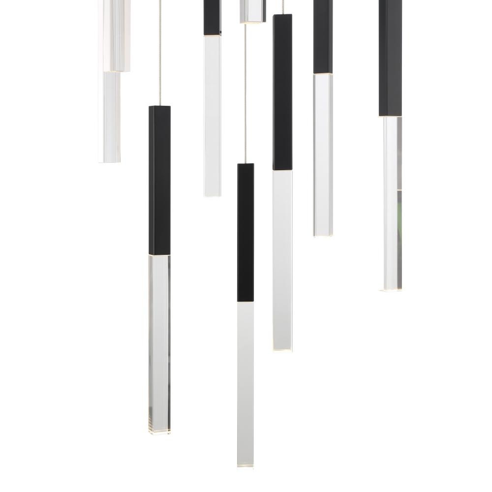 Its crystal rectangular prism and sharp beveled edges create brilliant illumination to the Benicio collection. Solid glass vertical spires cast vivid refractions across wall and ceiling surfaces. The thin simple geometric shape lends itself to luxurious and contemporary environments while providing a dual LED light source.