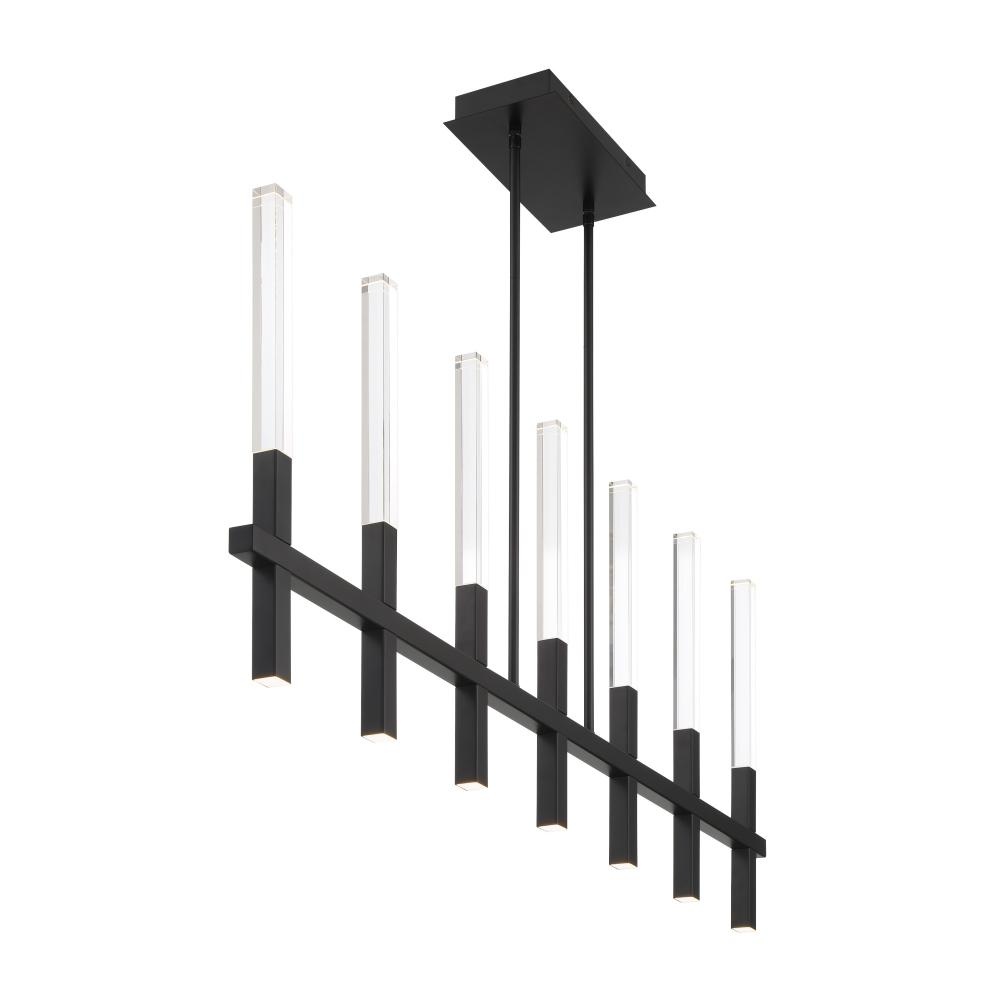 Its crystal rectangular prism and sharp beveled edges create brilliant illumination to the Benicio collection. Solid glass vertical spires cast vivid refractions across wall and ceiling surfaces. The thin simple geometric shape lends itself to luxurious and contemporary environments while providing a dual LED light source.