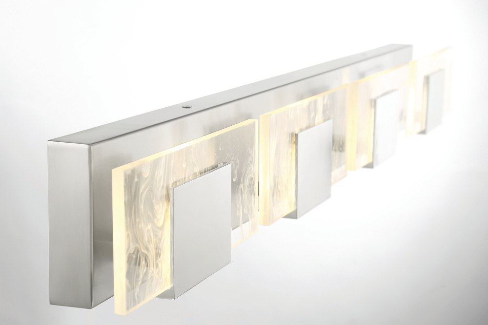 Stylized smoke contrails have inspired music, art and movies. Now these streaming liquid particles suspended in the atmosphere have resulted in wide diffuser panels cupped by forward-facing plates that hide the LED light source to deliver linear rectangles of gauzy illumination.