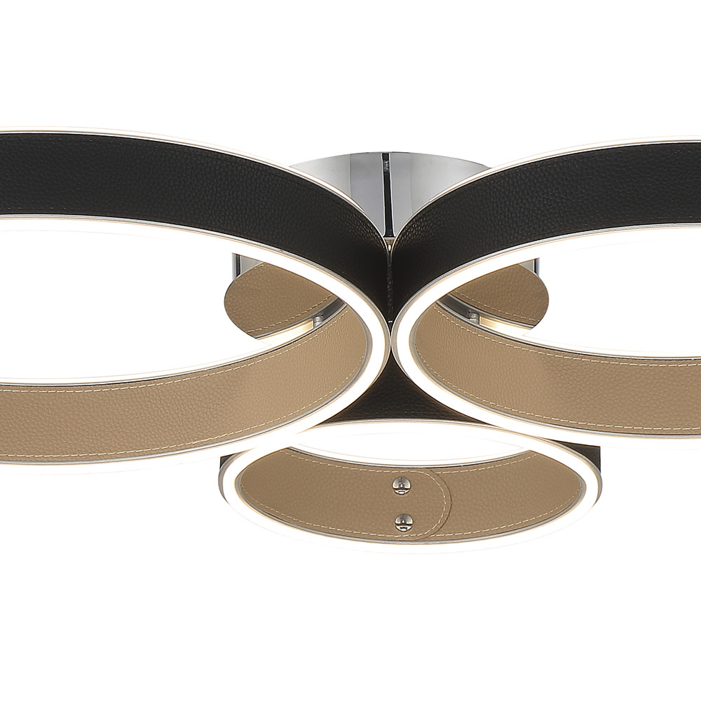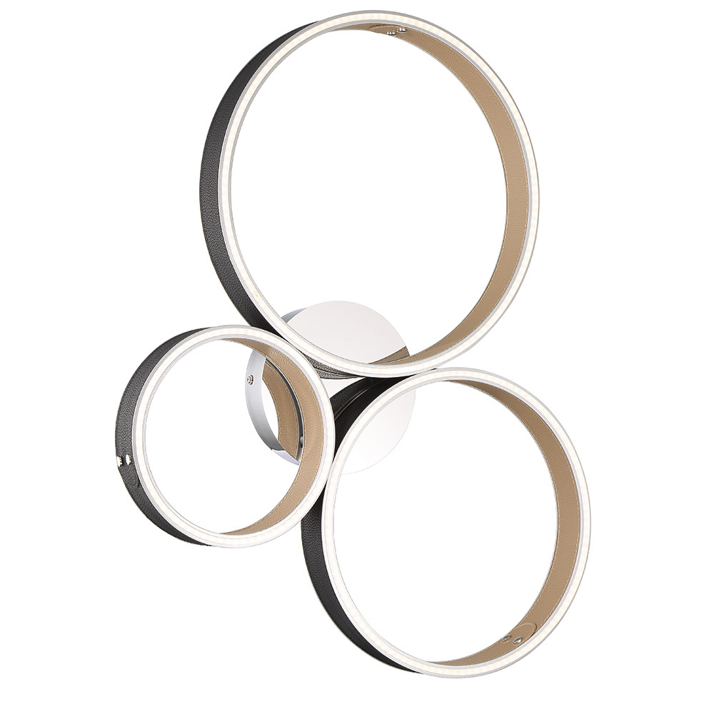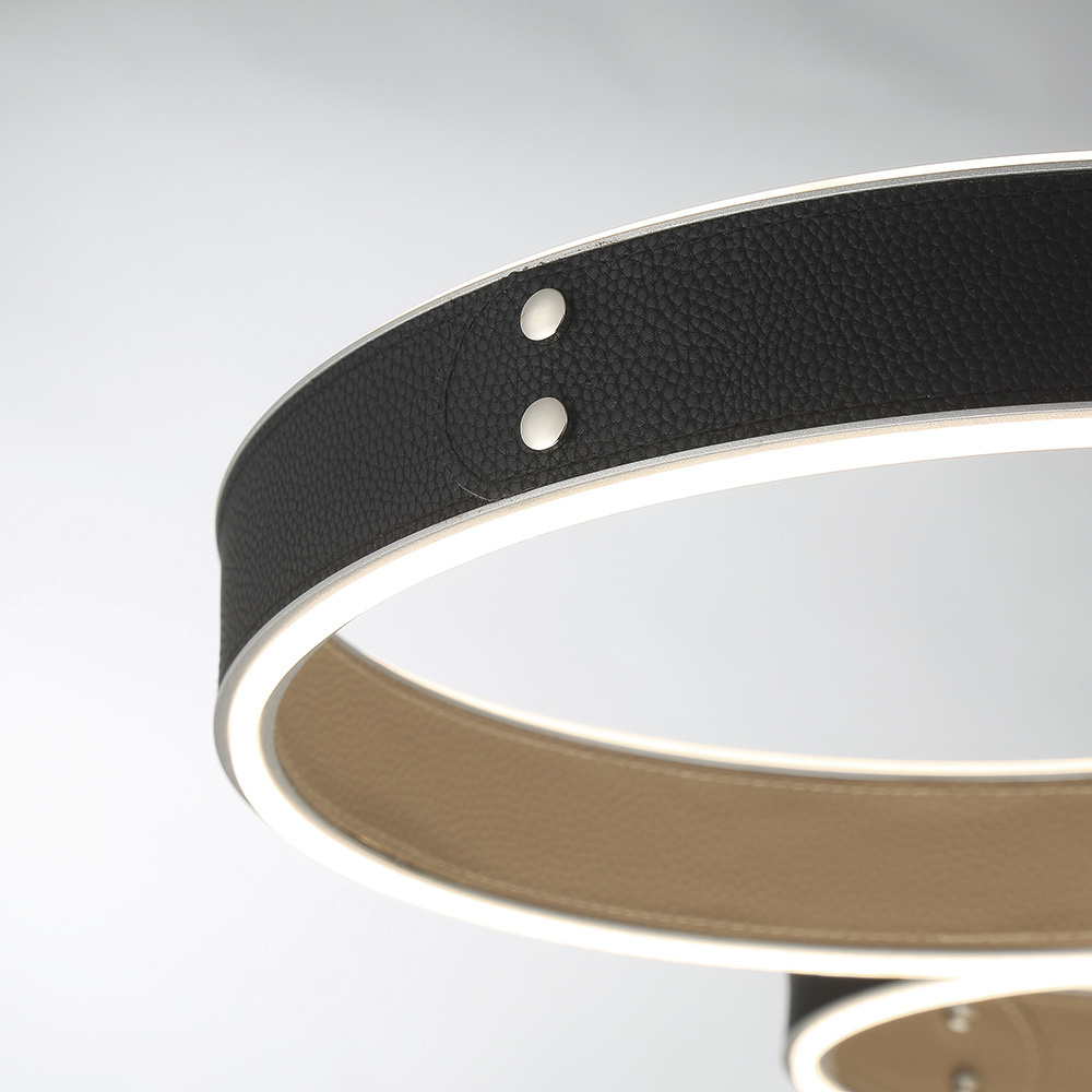 The Verdura collection features vegan leather, accentuated by decorative silver studs. The two-toned fabric highlights one color on the inside while displaying a complementary second color on the outer ring. The textured grooves are highlighted by the luminous glow of integrated LED lights that are encased between. This collection is not only abundant in size but also in the number of fixtures offered. Be it a small home office or a grand staircase, the Verdura collection is available in a range of fixture sizes to fit any room space.