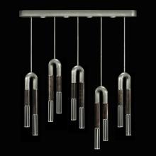 Linear five-drop pendant featuring soft curves and the inclusion of metals carefully handcrafted to transition from parchment to magnificent glass, culminating in a stunning beam of light. Suspended by connectable rod segments for a customizable length. Available in a wide range of exquisite finishes, including our five standard finishes and our newest Soft Ombre Bronze & Soft Ombre Silver, with the choice of two parchment colors, Charcoal and Smoke. Also available with no parchment.