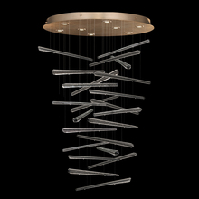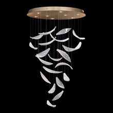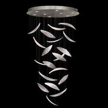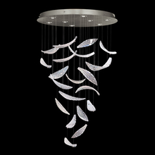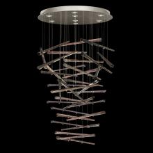 Elevate raises your environment to new heights. Each Ebony Stardust glass spire is hand sculpted with solid ebony crystal in a clear crystal casing. Illuminated from a silver leaf canopy and suspended by adjustable cables, this Made in America round fixture features 23 sculpted spires and is ideal for high ceilings.
