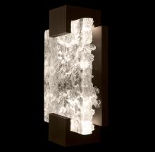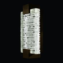 Sconce featuring “Rake” cast glass. Inspired by Zen patterns formed with tiny pebbles, “Rake” combines monumental cast glass with deep hand carved patterns, perfectly captured by an array of hidden waterproof LEDs, giving the glass a truly contemporary feel to an ancient pattern. Choice of three finishes, champagne tinted gold leaf finish or silver leaf for indoor only, and a hand rubbed black iron (shown) for indoor and outdoor use.
