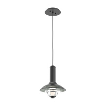 A unique fusion of textured kiln-fused glass, cast crystal glass and precision-crafted metal lends surprising drama to this modern pendant style. Available in a choice of Smoke Granite or Clear Granite textured glass and several finishes.