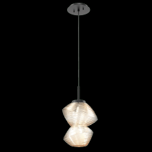 Mesa Pendant - Burnished Bronze - Metallic Beige Silver - Amber Blown Glass - Cloth Braided Cord - LED - 2700K