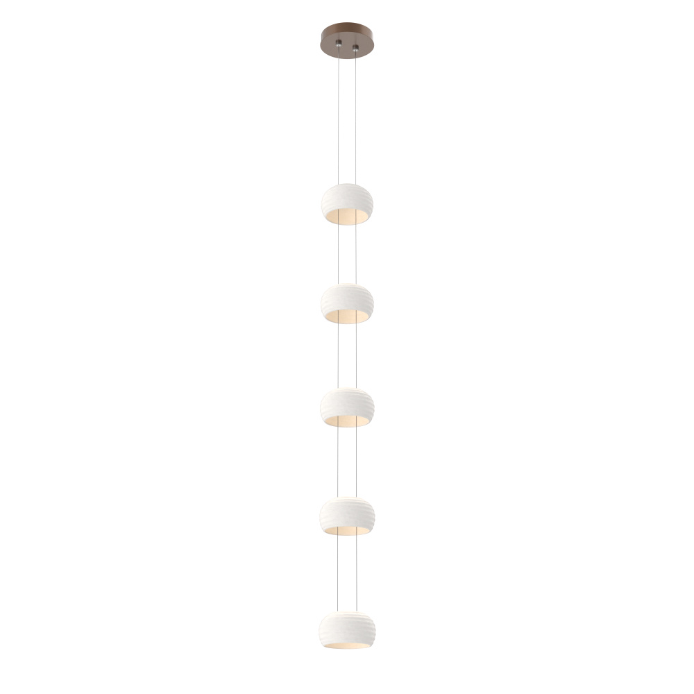 As a stairwell, entry, or living room statement piece, this take on the Torno collection can extend up to 20 feet, with adjustable configurations of 5-, 15-, or 25-ceramic shades that let you tailor each drop for proportion and visual flow. The result is a modern, quietly dramatic installation that transforms vertical space into an architectural moment.