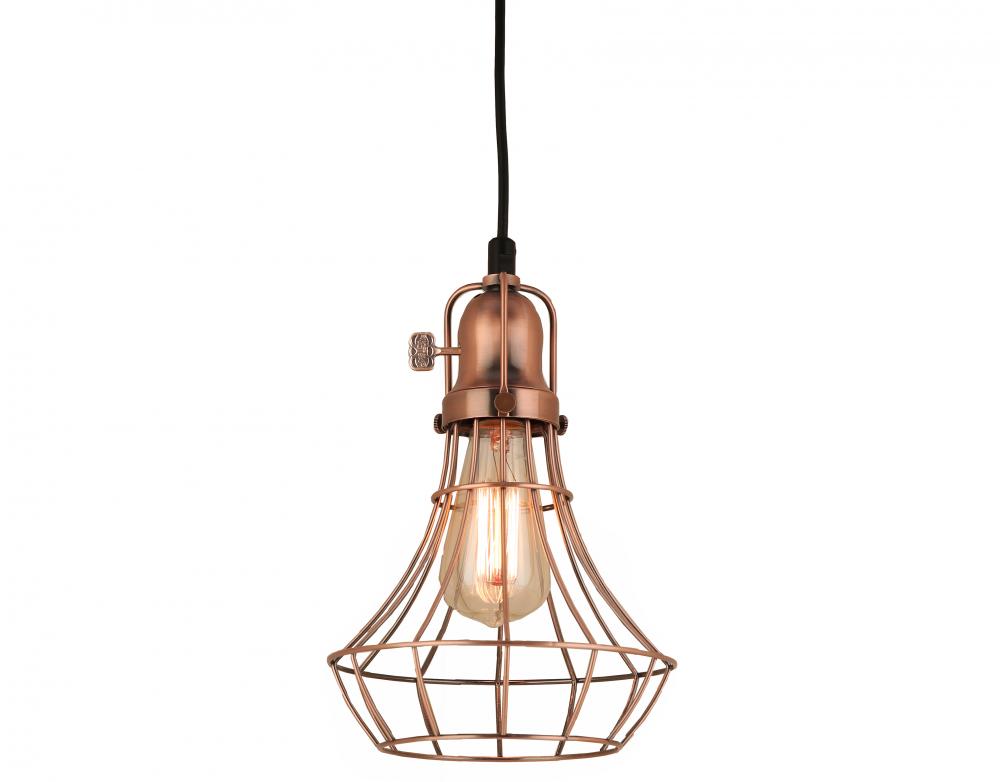 8 ft Black Cord Hung Pendant, Weathered Copper Finish