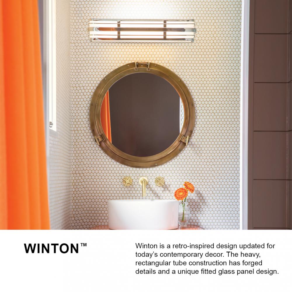 Winton is a retro-inspired design updated for today's contemporary décor. The heavy, rectangular tube construction has forged details and a unique fitted glass panel design.