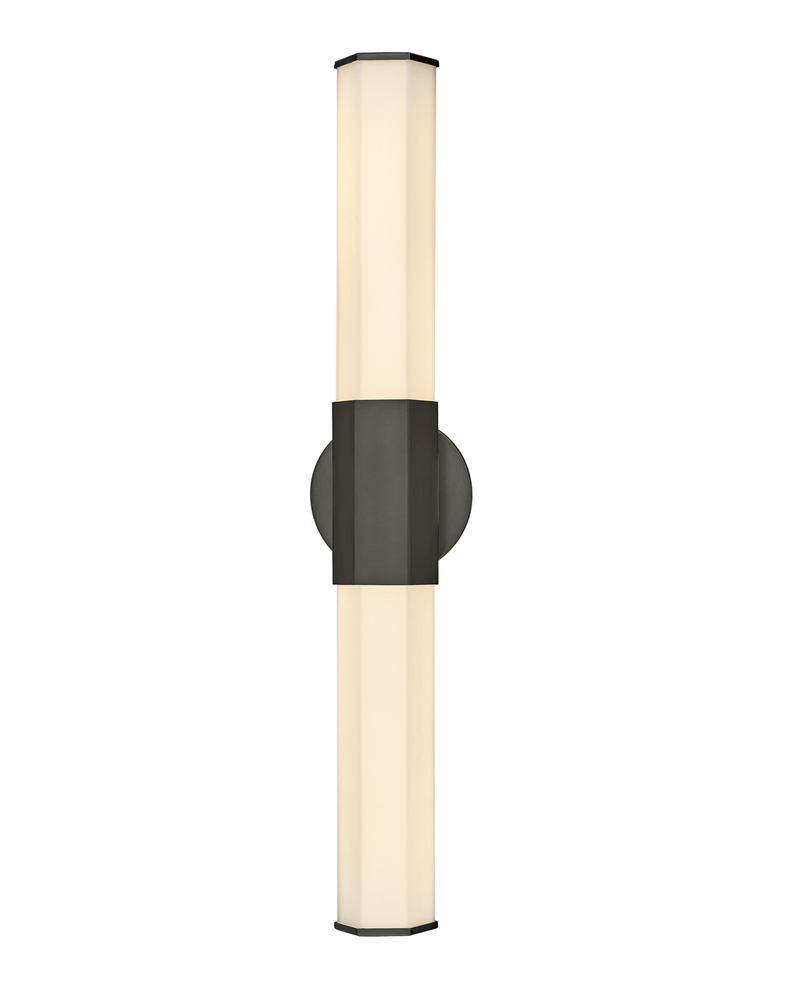 View the many sides of Facet. Interesting angles combine with bold metal features to create an edgy and contemporary profile that is unpretentious yet unforgettable. Hexagonaletched opal glass is showcased by Heritage Brass or Black Oxide finishes.