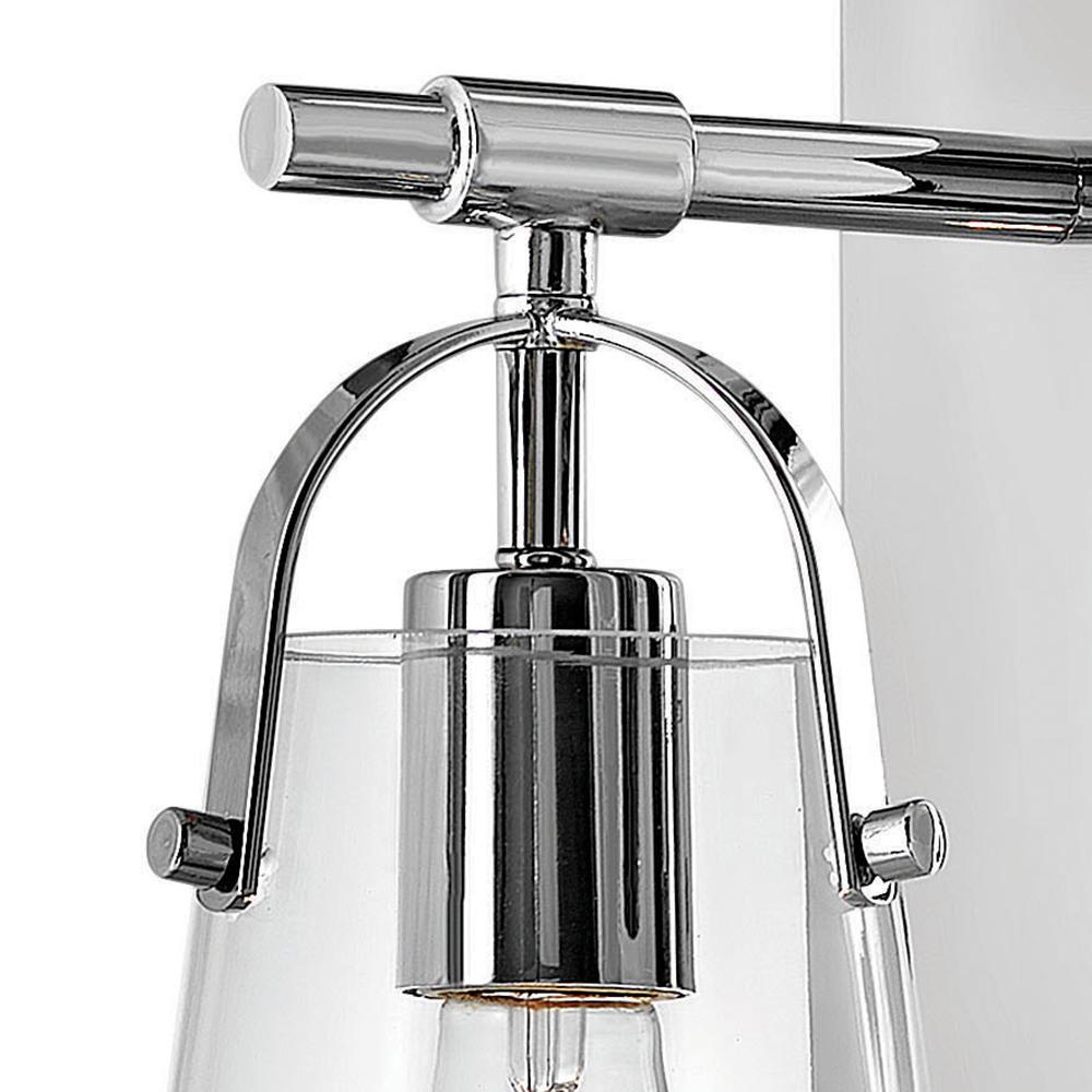 Clean and airy, Foster breathes composed simplicity into any bath space. Its softly tapered glass shade, suspended from arched handle prongs, creates a sophisticated transitional silhouette, enhanced by practical yet stylized details.