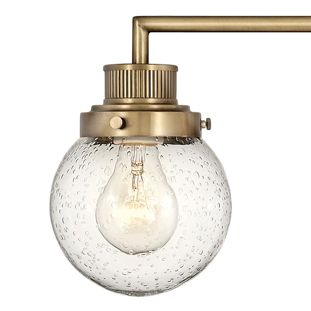 Poppy features clear glass spheres that bubble out of the refined, ribbed Chrome or Heritage Brass fitters to create a simple, yet sophisticated silhouette. An elegant, stepped backplate and crisp crossbar anchor this airy design. Poppy showcases mid-century style with a spectacular spin.