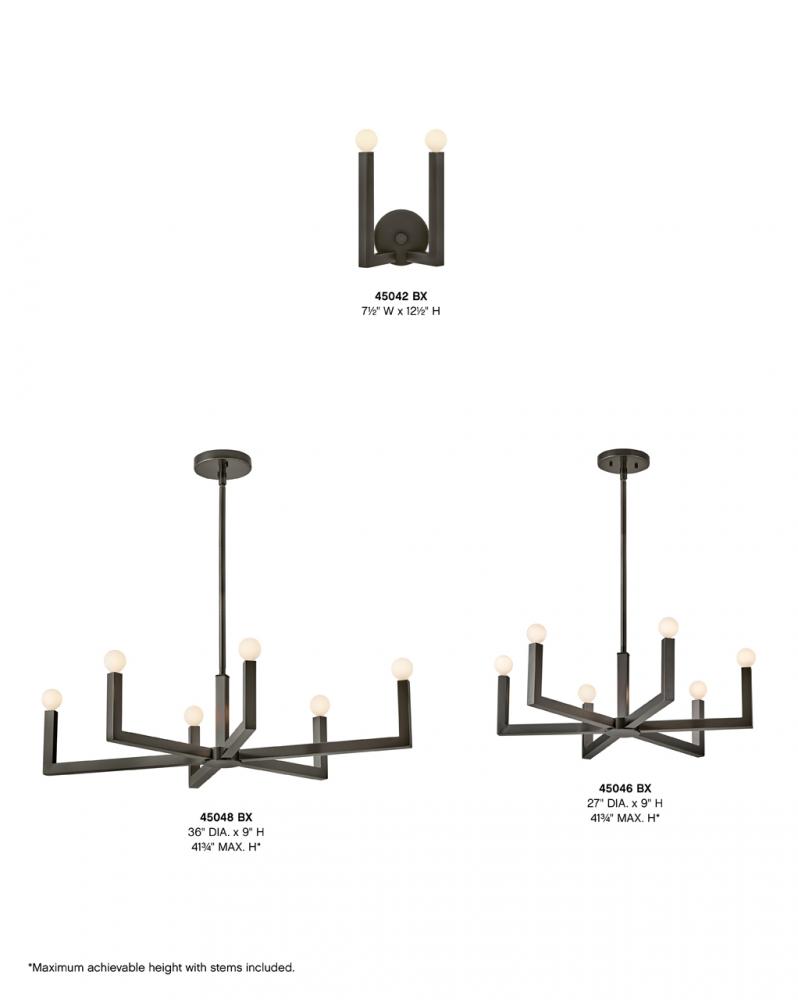 The Ezra family stunningly pairs minimalist elegance with an industrial edge. The strong square arms, sharp angles, and bold silhouette add dimensional appeal, bringing interest to dining rooms, foyers, kitchens, and beyond. Pairing Ezra with a globe-style bulb nails down the transitional, mid-century modern vibe.