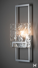 A tall, open rectangular piece of steel holds a large clear, textured glass square panel giving the Geo Sconce an angular yet distinguished allure. Very geometric in design, with clean simple lines, the Geo adds a touch of modern style to any space.