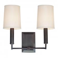 Rather than the traditional bobeche and candlestick motif, a series of stepped circular rings transition from Clinton’s thin square arms to the smooth columnar holder. A tapered barrel shade completes the cleanly styled composition. Clinton mounts to a 2” x 4” gem box.