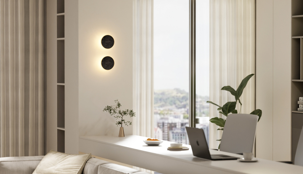 A versatile lighting solution perfect for a variety of spaces. Emitting soft and indirect light in a 360-degree spread, this sconce creates a gentle ambiance that's easy on the eyes. With cover plate options including felt and wood veneers in various finishes, the Ramen Mini Wall Sconce offers both style and functionality. Plus, it's suitable for both indoor and outdoor use, adding flexibility to your lighting design. Optionally, front plates can be custom laser cut, making it ideal for showcasing logos or numbering. An excellent choice for hotels, offices, schools, clinics, residences, and public spaces alike.