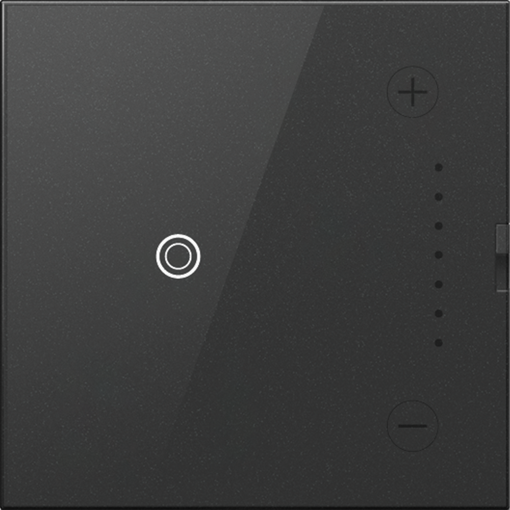 Perfect anywhere you'd like to turn lights on and off with the simplest touch, while also enjoying the ability to dim. Featuring a translucent glass-like face, this modern dimmer lets you control your lights by simply pressing a finger to the center circle to turn lights on/off, or use the + or - on the side to dim. Use the dimmer switch on its own to control a 0-10V light or fixture from a single location, or pair with a 3-way switch to control a single light source from two locations. Pair with the matching Touch Switch for a consistent control-style throughout a room, or your entire house.This dimmer* features enduring Microban? antimicrobial technology that works to reduce the growth of bacteria, around the clock, for the lifespan of the product.* Existing inventory of switches, dimmers and plastic wall plates from the adorne? Collection at some partner locations may not yet include Microban? protection. To confirm that a specific Legrand product is protected with Microban?, check that the exterior of the product packaging includes a green dot or a ""Protected with Microban"" label.Made exclusively for use with screwless Wall Plates from the adorne? Collection, sold separately.No antimicrobial efficacy claims are being made or are valid with respect to products sold in Canada.