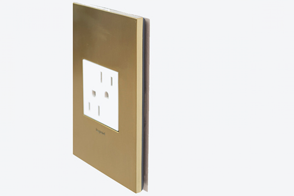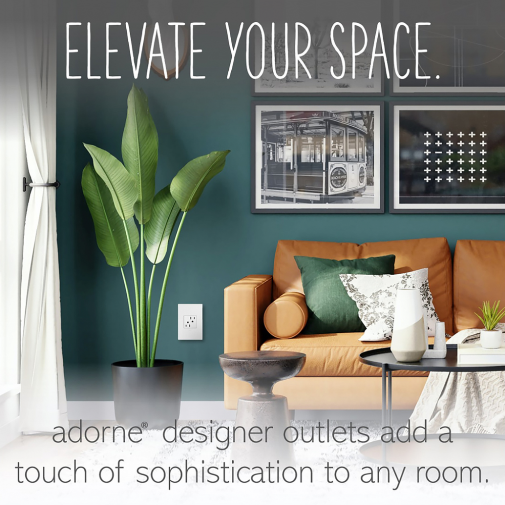 A modern upgrade for style and safety, this tamper-resistant designer outlet from the adorne Collection installs easily for the basic power every home needs, while elevating your space. Made exclusively for use with screwless Wall Plates from the adorne? Collection, sold separately.