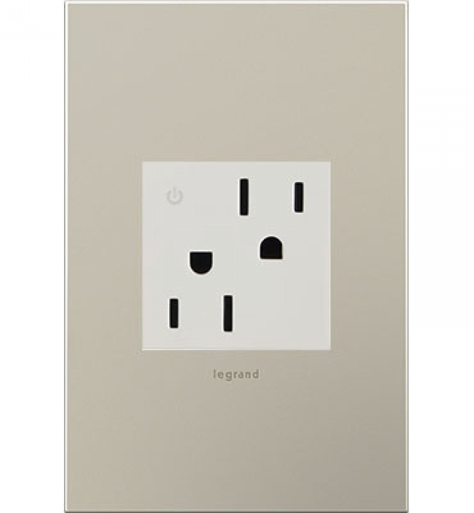 A modern upgrade for style, safety and energy management, this tamper-resistant, dual-controlled outlet from the adorne Collection installs easily in place of an existing outlet. Made exclusively for use with screwless Wall Plates from the adorne? Collection, sold separately.
