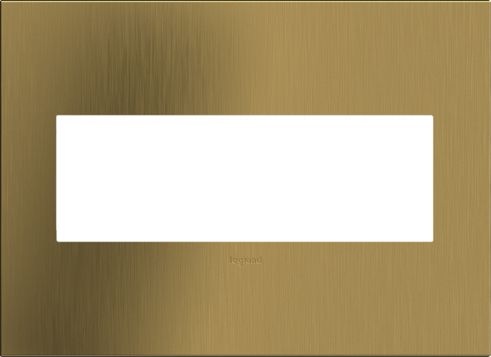 Classic brass goes modern in a milder metallic that transforms spaces with understated elegance. A 1-Gang Wall Plate, it is perfectly sized to fit a standard-sized adorne device, or any combination of two half-sized adorne designer switches or outlets.