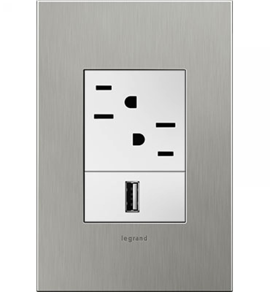 Crafted with real cast metal, this is the coolest contemporary accent to any stylish kitchen or bath. A 4-Gang Wall Plate, it is perfectly sized to fit any combination of up to four standard-sized adorne devices, or up to eight half-sized adorne designer switches and outlets.