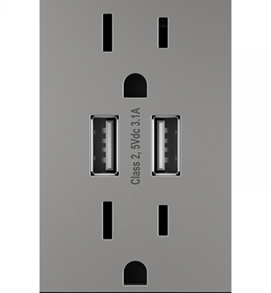 adorne Dual-USB Outlet with Magnesium Wall Plate, Magnesium