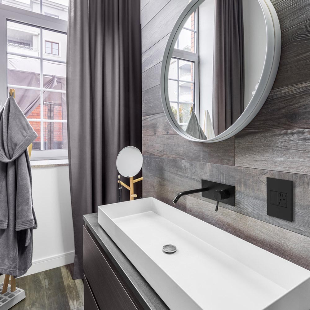 Dark, handsome and a little bit mysterious, it is perfect for adding on-trend edge to any space. Made exclusively for use with designer switches and outlets from the adorne? Collection.This wall plate* features enduring Microban? antimicrobial technology that works to reduce the growth of bacteria, around the clock, for the lifespan of the product. * Existing inventory of switches, dimmers and plastic wall plates from the adorne? Collection at some partner locations may not yet include Microban? protection. To confirm that a specific Legrand product is protected with Microban?, check that the exterior of the product packaging includes a green dot or a ""Protected with Microban"" label.