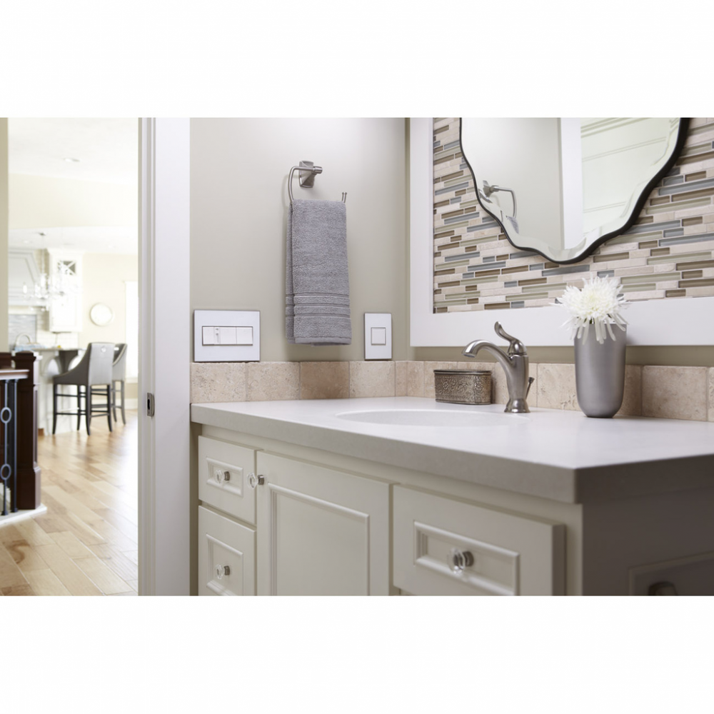 Providing a new twist on classic white, this sleek finish is sure to wow. A 3-Gang Wall Plate, it is perfectly sized to fit any combination of up to three standard-sized adorne devices, or up to six half-sized adorne designer switches and outlets.