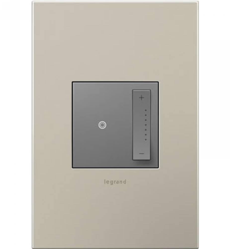 Turn lights on/off, or dim, with just a soft tap of a finger, thanks to inventive micro-movement technology. Meant for single fixtures and small lighting groups that do not exceed 700W. Made exclusively for use with screwless Wall Plates from the adorne? Collection, sold separately.