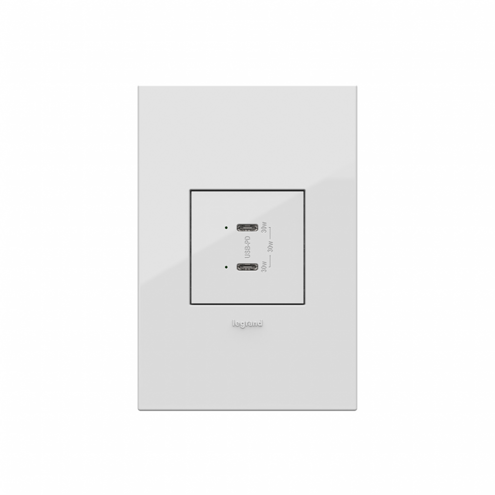 adorne Ultra-Fast Plus Power Delivery USB Type-C/C Outlet Module, White
