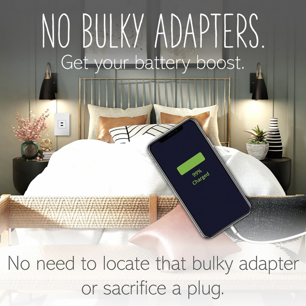 Charge phones, tablets and more up to 40% faster, with Ultra-Fast USB Outlets from the adorne? Collection. Delivering a leading 6 amps of power to its two USB connections for faster in-wall charging, without an adapter. Made exclusively for use with screwless Wall Plates from the adorne? Collection, sold separately.