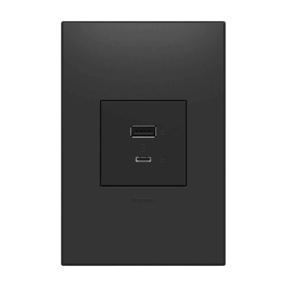 Charge phones, tablets and more up to 40% faster, with Ultra-Fast USB Outlets from the adorne? Collection. Made to deliver a leading 6 amps of power, it features two built-in USB connections, including one to fit USB Type-C devices, and provides a fast, future-proof solution for convenient in-wall charging without an adapter. Easily replacing traditional outlets in as little as ten minutes, this Ultra-Fast USB Outlet transforms your space with modern functionality and the unique, contemporary aesthetic of adorne. Made exclusively for use with screwless Wall Plates from the adorne? Collection, sold separately.